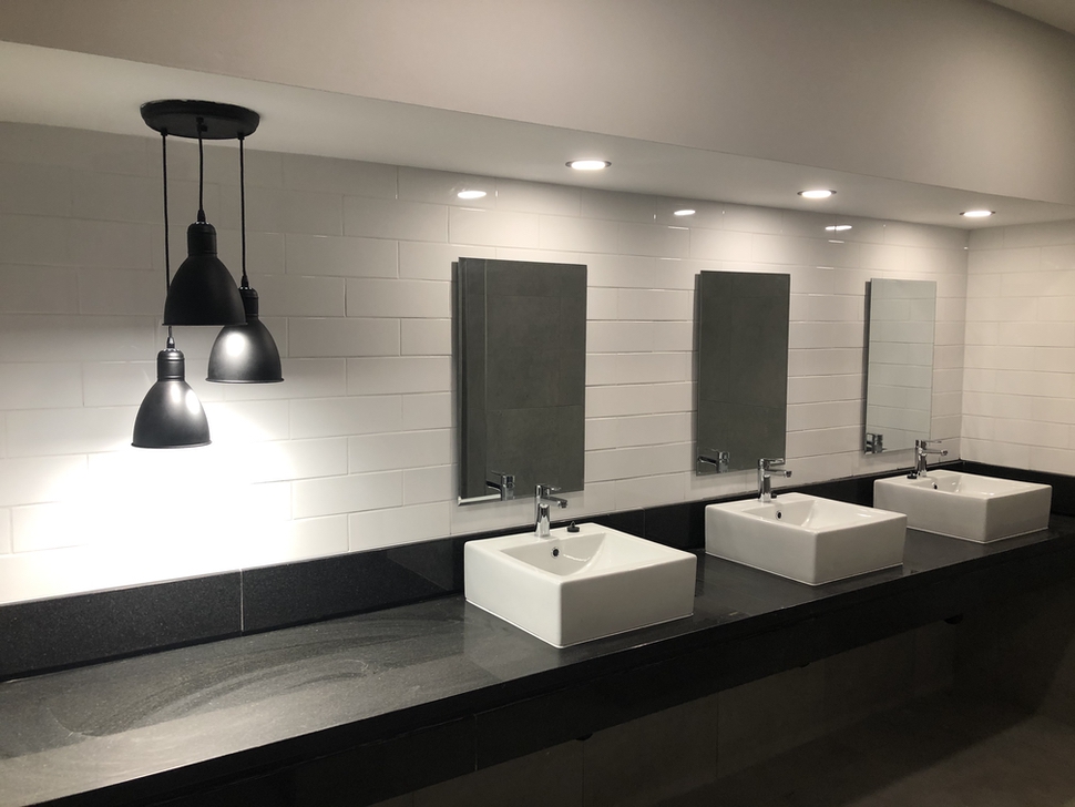 Practical facilities within the building, including bathrooms and the canteen area, have also been completely redone with new fixtures for a stylish specification throughout. The canteen area specifically was reconfigured with a new kitchenette, coffee counters and both wall and dividing features.