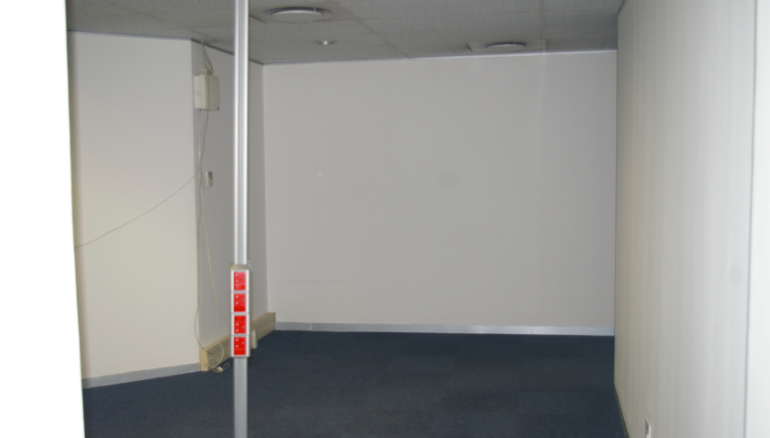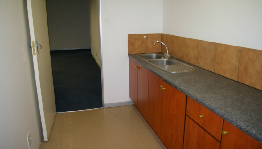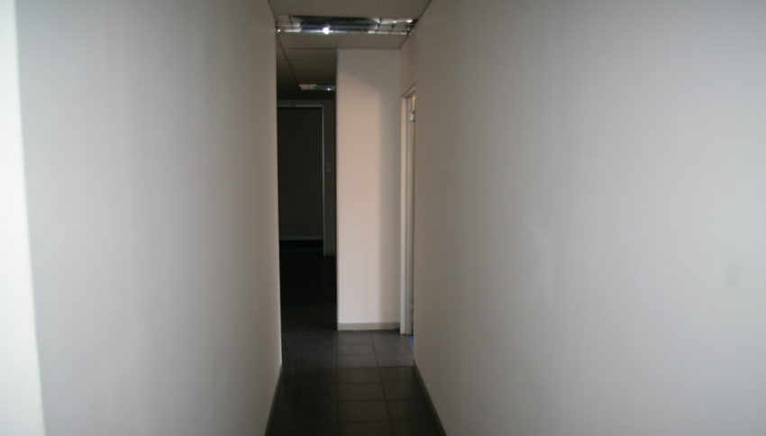 • Welcoming visitors through large glass doors into a modern looking tiled foyer with cast iron railings